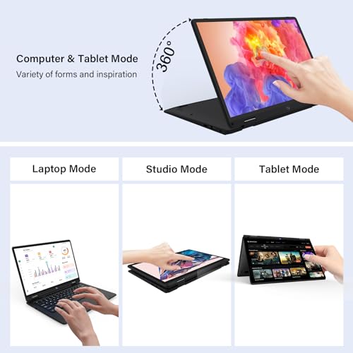 ✅【Schermo Touch e Pieghevole a 360°】Il notebook supporta le funzioni touch e può essere convertito in modalità tablet. Per garantire la massima durata, le cerniere di precisione di questo notebook sono state testate 20.000 volte e consentono l’apertura e la chiusura, nonché la piegatura fino a 170°. In modalità tablet, attivare il pulsante di blocco della tastiera laterale per evitare che la tastiera posteriore venga toccata accidentalmente.