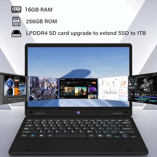 Notebook 16GB DDR4 256GB SSD, Win 11 Pro Celeron 2.8Ghz, Computer Portatile Touch Screen 12 Pollici FHD, 1366×800 IPS, Laptop Mini HDMI, 2.4G/5G WiFi, BT 5.0, PC Portatile in offerta Mouse, Nero