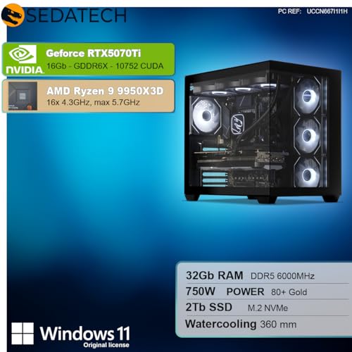 Sedatech PC Gaming Advanced Watercooling Maxi Vision • AMD Ryzen 9 9950X3D • RTX5070Ti • 32Gb DDR5 • 2Tb SSD M.2 • Windows 11