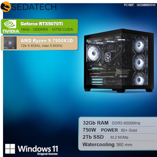 Sedatech PC Gaming Pro Watercooling Maxi Vision • AMD Ryzen 9 7900X3D • RTX5070Ti • 32Gb DDR5 • 2Tb SSD M.2 • Windows 11