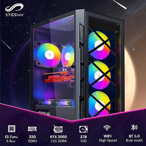 STGSivir- Desktop da gaming PC-GeForce RTX 3060 12G GDDR6, Intel Core i7 3.9GHz -32G RAM, 1T SSD, WiFi 600 M, BT 5.0, RGB Fanx6, computer da gaming W10H64 per giocatori e streaming