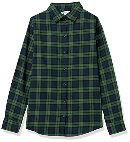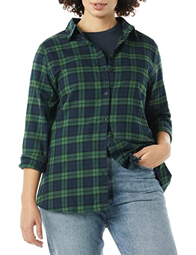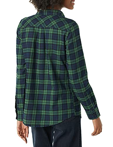 Amazon Essentials Camicia in Flanella Scozzese Leggera a Manica Lunga vestibilità Classica Donna, Blu Marino Verde Scuro Motivo Quadri Medi, M