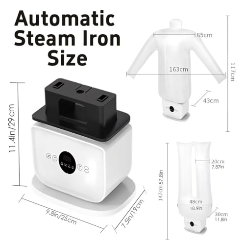 STIRATURA VERAMENTE A MANI LIBERE: Basta posizionare il capo sul manichino gonfiabile e chiudere la cerniera sui lati regolabili per una vestibilità personalizzata (da XXS a XXL). La macchina automatica a vapore stira automaticamente ogni centimetro, dai polsini ai colletti, garantendo una finitura senza pieghe per tutti i capi.