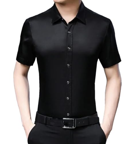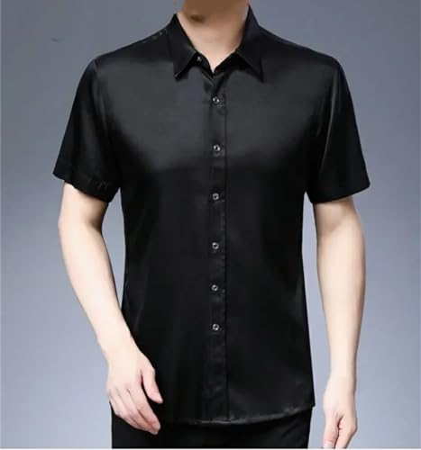 Camicie Larghe Solide A Maniche Corte Sottili Estive in Seta da Uomo