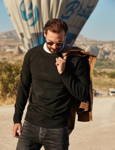 COOFANDY Maglioni da Uomo Maglione a Maglia Pullover Girocollo Maglione Firmato Felpa Nera Maglione da Lavoro Sweater Leggero Caldo Jumper Invernale Nero M