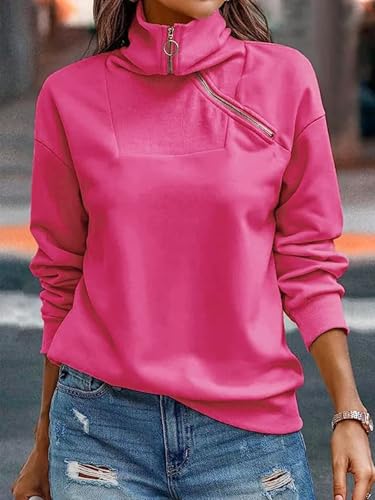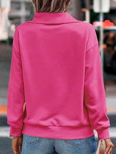 Cuptacc Felpa Donna Casual Tinta Unita Cotone Pullover Donna 2024 Elegante Mezza Zip Scollo a V Autunno Inverno Tops Rosa Caldo, Small S 36