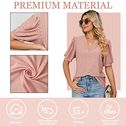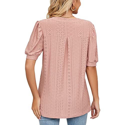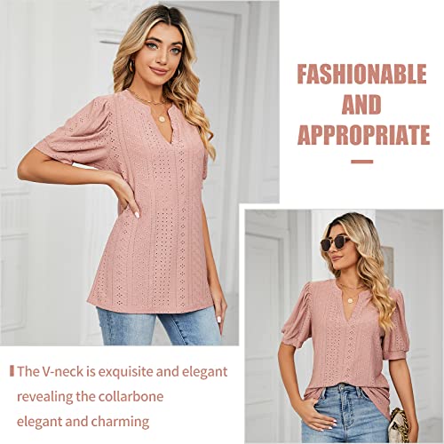 Decorie T Shirt Donna Estive con Scollo a V e Balze Manica Corta Magliette Donna Elegante Rilassato Bluse e Camicie da Donna (B-Rosa,S)