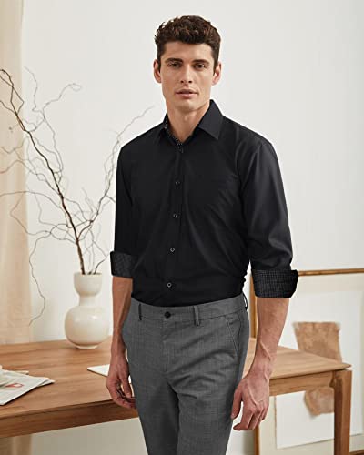 Enlision Camicia Nera Uomo Elegante Manica Lunga Formale Camicia Casual Classiche Contrasto Bottonato Cotone Shirt Regular Fit Lavoro Festa 2XL