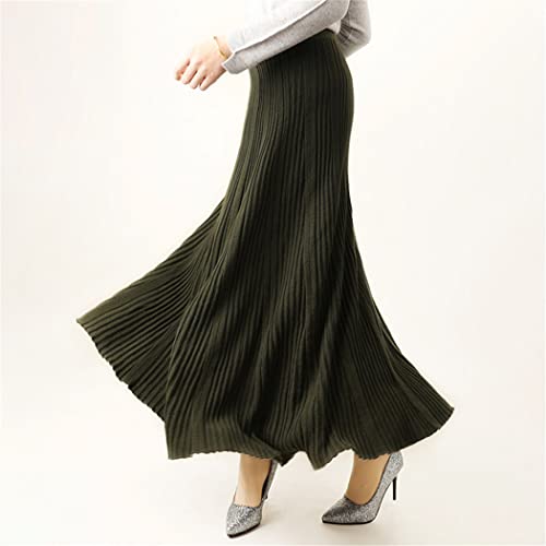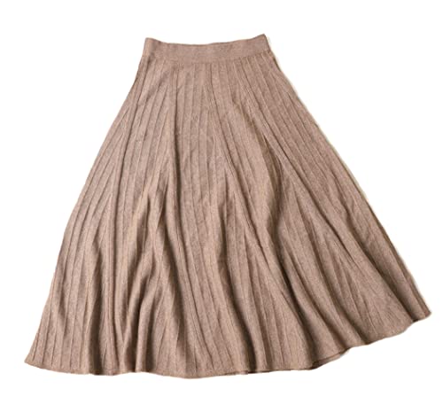 FULBHPRINT 100% Cashmere Gonna Donna Autunno Inverno Mid-Length Gonna In Cashmere A Vita Alta Spessore A-Line Maglia Gonna A Mezza Lunghezza, Dark Cashmere, Taglia unica
