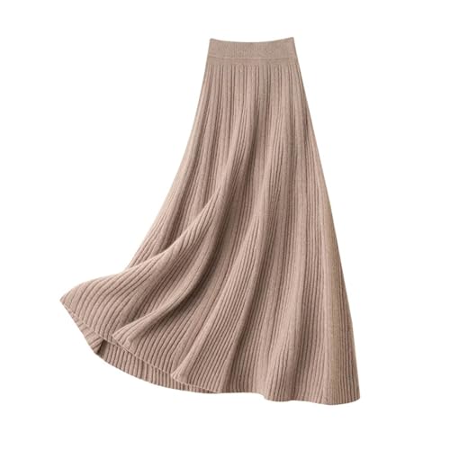 Gonna in Cashmere 100% Gonna A Pieghe A Vita Alta Lavorata A Maglia di Media Lunghezza da Donna Gonna A Trapezio in Lana con Orlo Grande