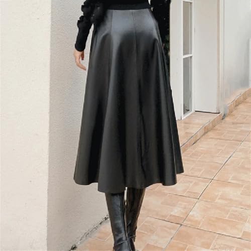 Gonne a vita alta da donna in vera pelle plissettata lunga gonna svasata, Nero , XL