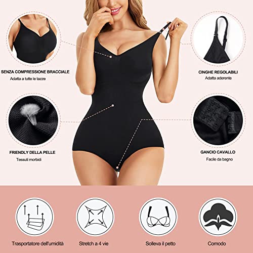 Gotoly Body Modellante Donna Shapewear Body Contenitivo Modellante Spallino Regolabile Intimo Snellente Shaper Pancia Piatta Dimagrante Shaping Bodysuit Bustier Seamless Fajas (M/L, Nero)