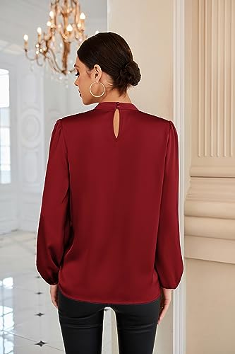GRACE KARIN Camicia Donna Elegante a Manica Lunga con Scollo Rotondo Tinta Unita da Ufficio Vino Rosso XXL