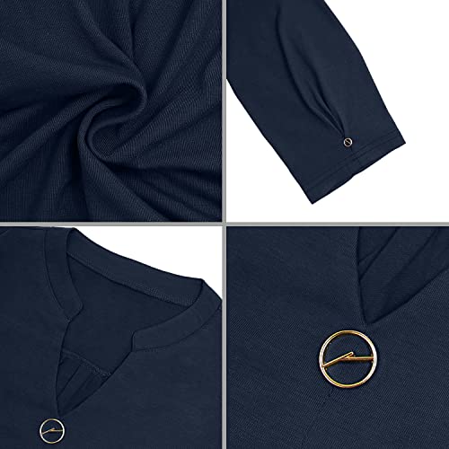 HANERDUN Camicetta Donna Manica a 3/4 Blusa Camicia con Scollo a V Tinta Unita Top Tunica Elegante