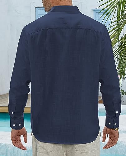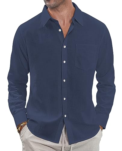 J.VER Camicia in lino, da uomo, a maniche lunghe, vestibilità normale, da spiaggia, in cotone, per affari, per il tempo libero, da spiaggia, Blu mare, 5XL