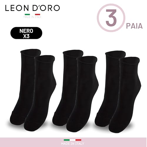 LEON D’ORO Calzini Donna senza elastico, Calze Donna Caldo Cotone 3/6 Paia Calzino Corto Moda Made in Italy (IT, Testo, Taglia unica, Regular, Regular, 410-3 paia Nero)