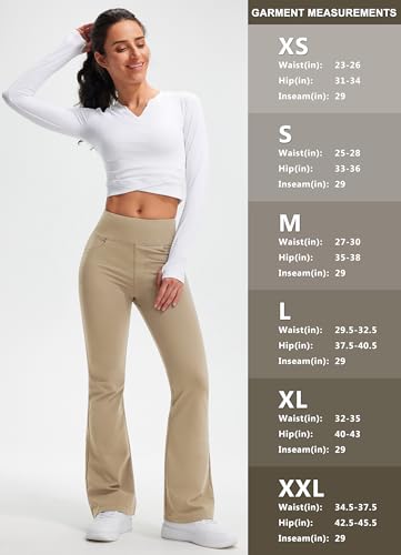 Libin Leggings termici da donna con flared, pantaloni termici, impermeabili, invernali, pantaloni da yoga, con tasche, cachi, M