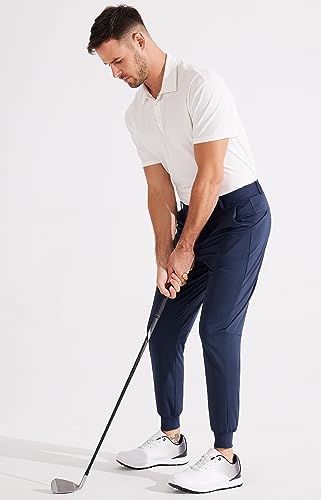 Libin Pantaloni da Golf da Uomo Elasticizzati Slim Fit Jogging Pants Sportivi Abito Pantaloni Lunghi Jogger Tessuto Pants con Tasche, Blu Navy M