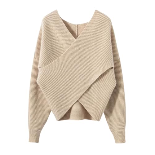 Questo maglione lavorato a maglia a maniche lunghe è una scelta versatile, perfetta per l’autunno e l’inverno. Il colore beige si adatta a vari outfit, mentre lo scollo a V incrociato aggiunge un tocco di stiloso. La Taglia unica offriva facilità, ma potrebbe piacere preferire una vestibilità aderente per chi cerca un’intimo piu’ svecchiata.