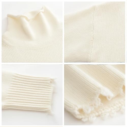 Maglione invernale da donna spesso e caldo in cashmere, a collo alto, tinta unita, bianco, Taglia unica