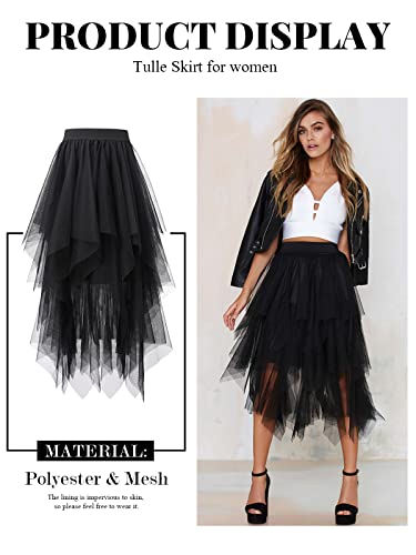 Monbessi Gonna in Tulle Donna Gonna Lunga in Tulle Elastica 80cm Gonna Irregolare in Maglia Quotidiana, Prom, Party(Vita: 60-78cm, Nero)