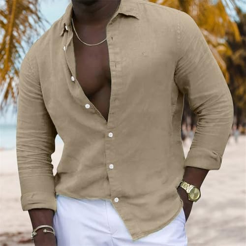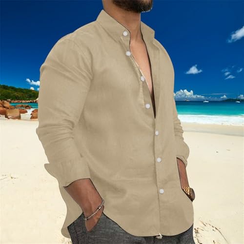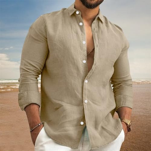 NIBESSER Camicia Lino Uomo Manica Lunga Camicia Uomo Estiva Elegante Camicia Uomo Casual con Bottoni Tinta Unita Traspirante per Mare Spiaggia Vacanza, Beige, L