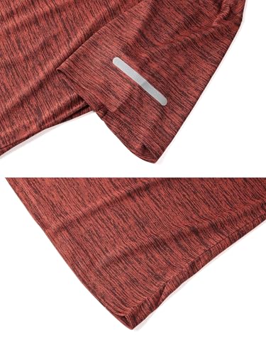 Peakwell Uomo Maglietta Sportiva T-Shirts Running Tee-Shirt ad Asciugatura Rapida e Traspirante con Strisce Riflettenti, Rosso-Arancio, XL