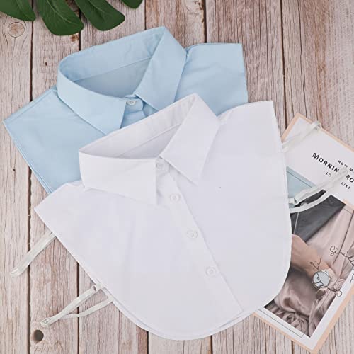 PHOGARY 2 Pezzi Colletto Staccabile Donna Camicia, Camicetta Mezza Camicia Colletto Falso Staccabile Decorativo Camicia Joker Cotone Polsino Collo Dickey Risvolto Falso da Donna(Blu e Bianco)