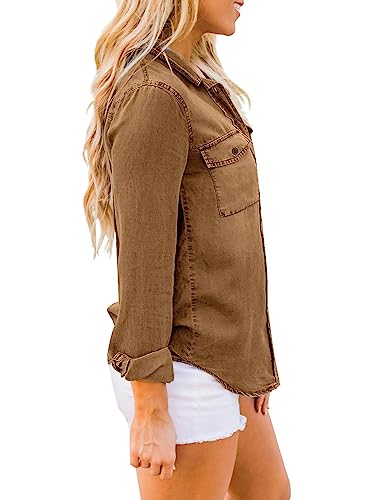 Camicia in denim da donna presentata in stile classico, con vestibilità comoda per dare un look perfetto a qualsiasi look casual.