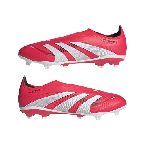 Scrivere un articolo in italiano sulle adidas Predator League Laceless Firm Multi Ground Football Boot, scarpe da calcio unisex per adulti, disponibili in rosso luminoso, bianco chiaro e nero e misura 42 2/3 EU.