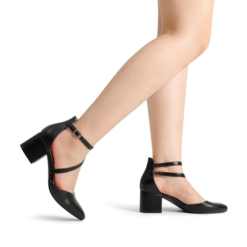 DREAM PAIRS Scarpe Tacco Donna Eleganti Decollete a Cinturini Incrociati Punta Chiusa Sposa Decolte Tacco Medio Largo,Size 37,Nero-PU,SDPU2354W