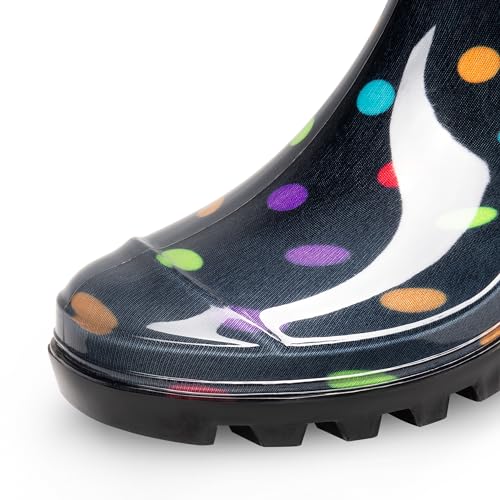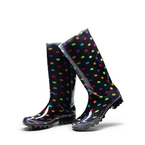 DREAM PAIRS Stivali da Pioggia Impermeabili Scarpe da Pioggia comode da Donna Stivali di Gomma Scarpe da Giardino Alte Impermeabili,Size 39,Multispot,SDRB2407W-E