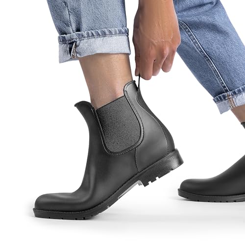 CARATTERISTICHE: Resistenti all’acqua: questi stivali da pioggia Chelsea sono realizzati in PVC che offre un’elevata resistenza all’umidità e all’acqua, proteggendo i piedi dalla pioggia e dal fango.