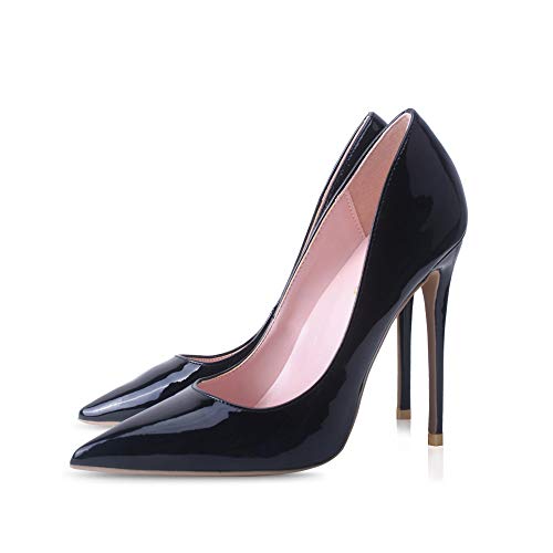 GENSHUO – Scarpe décolleté da Donna, con Tacco Alto a Spillo, Stile Sexy, Slip on, da Festa,Nero, 42 EU(12 US)