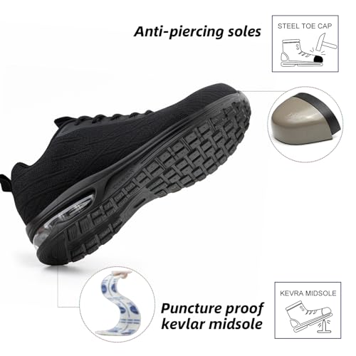 Hitmars Scarpe Antinfortunistiche Uomo Donna Scarpe da Lavoro S1 S2 S3 Antinfortunistica con Punta in Acciaio Leggere Traspiranti Scarpe Sicurezza C Nero EU43