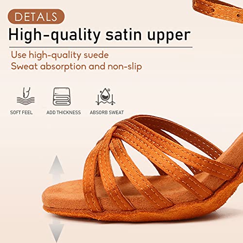 HROYL Scarpe da Ballo Latino Americano Donna in Raso Professionali Scarpe Ballo Salsa e Bachata da Sala,EM213-Marrone-7, EU 36.5