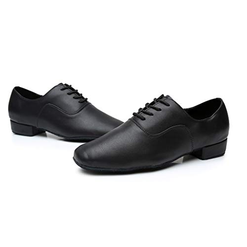 MaNMaNing Scarpe da Ballo da Uomo in Pelle, con Lacci, Tacco Largo, Suola Morbida, Latin Jazz, Moderne, Scarpe da Dance alla Moda, Tempo Libero, in Pelle