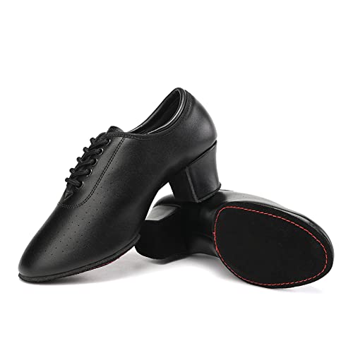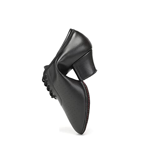 SWDZM Scarpe da Ballo Latino Donna Punta Chiusa Lacci Salsa Moderno Jazz Pratica Scarpe da Allenamento con Lacci,Nero,Tacco 5cm,38EU