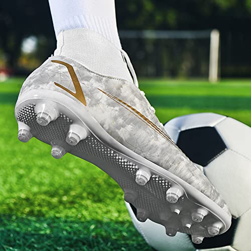 Topwolve Scarpe Calcio Uomo Teenager Adulto Training Alte Scarpe da Calcetto Antiscivolo Erba Scarpe Calcio Leggere e Traspiranti Bianco 41 EU