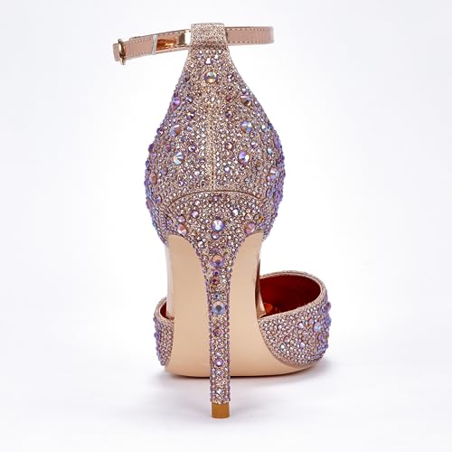 Design classico e di lusso: Questi tacchi alti con strass hanno una punta appuntita progettata in PU e ornata di strass scintillanti, un delicato cinturino alla caviglia con chiusura a fibbia, il design speciale e alla moda li rende particolarmente attraenti. Abbinateli a una clutch scintillante per completare un look irresistibilmente appariscente!