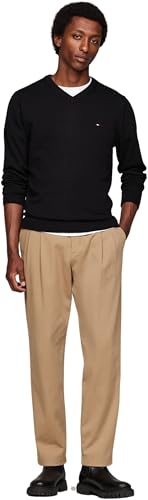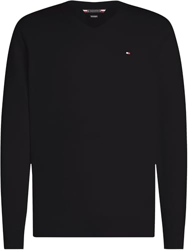 Tommy Hilfiger Pullover Uomo Cashmere V Neck Pullover in Maglia, Nero (Black), L