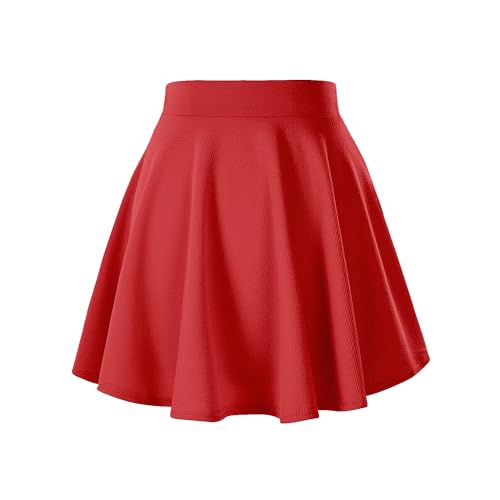 Urban GoCo Donna Moda Svasata Mini Gonna da Pattinatrice Versatile Elastica Solida Colore Gonna Rosso S