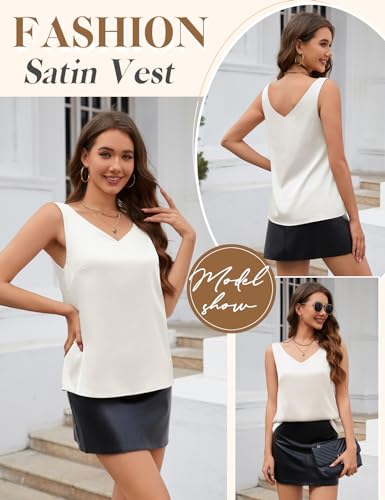 Yuson Girl Canotta Donna Estiva – Elegante Canottiera Donna Scollo a V Canotta Raso Senza Maniche Sottogiacca Casual Top di Seta Tinta Unita Tank Shirt Sexy Basic Camicia Canotta(Bianco, XL)