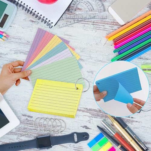 CARATTERISTICHE: 📇Pacchetto include: Riceverai 500 pezzi flashcards (10 colori diversi) e 10 anelli di rilegatura in metallo. Flashcards dimensioni: 10,5×7,5 cm, anello di rilegatura diametro: 3,5 cm. La quantità soddisfa le tue esigenze quotidiane.