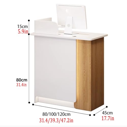 Questo bancone di recepzione, con luci LED integrati e cassetti serrati, è un elemento perfetto per una rinnovata sala d’ingresso moderna. Misurando 31,4″ x 31,5″, è adeguato per qualsiasi negozio che desideri apparire professionale e ben organizzato. Il colore grigio a sinistra aggiunge una toccataeleganza, creando un aspetto moderno e sobrio che è sicuro di sollevare l’immagine complessiva della propria azienda.