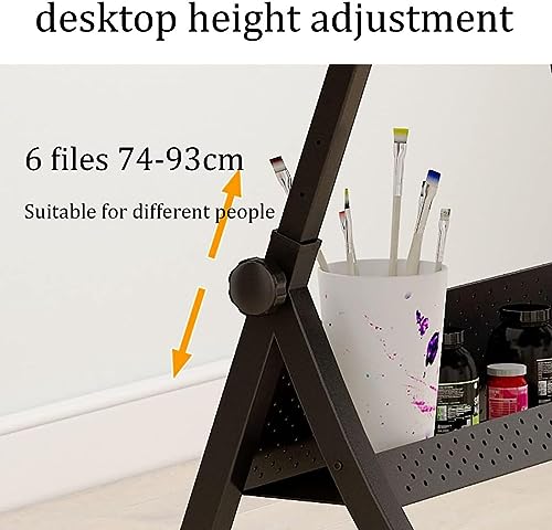 CARATTERISTICHE: ANGOLO REGOLABILE DEL PIANO DI LAVORO: l’angolo del piano di vetro può essere regolato da 0 a 50° per soddisfare le diverse esigenze; una sporgenza per matite nella parte inferiore del piano del tavolo aiuta a tenere fogli e cancelleria quando il piano è inclinato; può essere utilizzato come tavolo da disegno, tavolo da disegno artistico, tavolo per computer o tavolo da scrittura per dipingere o lavorare.