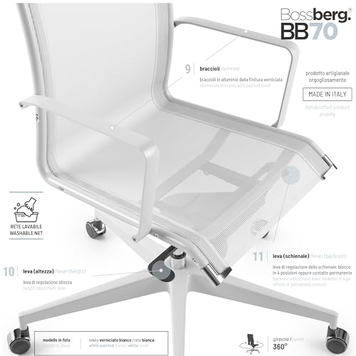Bossberg Sedia da Ufficio Bianca – BB70 – Sedia Pc Prodotta in Italia – Sedia Ergonomica Posturale Contro Mal di Schiena e Cervicale – Sedia Scrivania Girevole con Braccioli