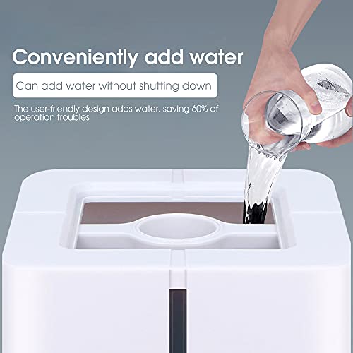【Aggiungi automaticamente acqua】: l’umidificatore è dotato di telecomando a infrarossi remoto, l’estremità superiore della porta di riempimento dell’acqua è piena d’acqua, è presente una funzione di temporizzazione degli appuntamenti e il design dello spegnimento automatico quando manca l’acqua.