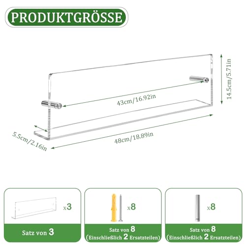 Dewonme 3 Pack Lunghezza 48 cm Scaffale per riviste a parete in acrilico trasparente adatto per la camera dei bambini, il soggiorno, la camera da letto e l’ufficio