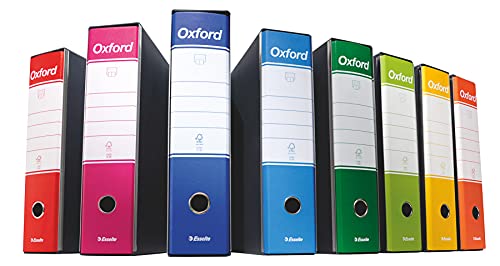 Esselte OXFORD BOX Confezione da 6 Registratori con custodia G85, Meccanismo a Leva N.1, in Formato Protocollo (23x33cm), Dorso da 8 cm, Con Scatola Archivio in Cartone, Colori Assortiti, 390785110
